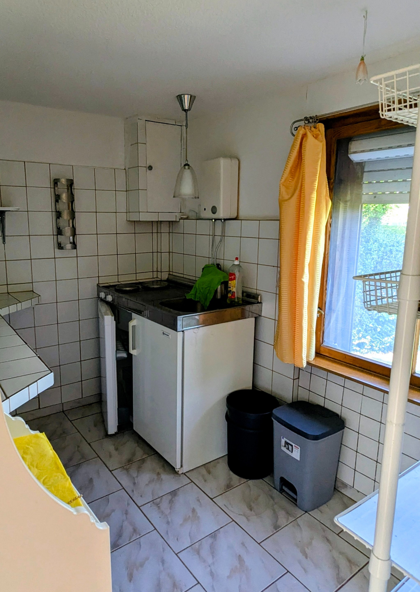 Die Laube begrüßt Sie mit einem gemütlichen Wohnraum, in dem ein einladender Kamin für wohlige Wärme sorgt. Großzügige Fenster durchfluten den Raum mit Tageslicht und schaffen eine Verbindung zur umgebenden Natur. Die intelligente Raumaufteilung umfasst eine Schiebetür, die das Schlafzimmer diskret vom Wohnbereich trennt, wodurch die Wohnfläche optimal genutzt wird. Die Küche ist nicht nur funktional, sondern auch ästhetisch gestaltet und bietet alle notwendigen Utensilien für Ihre kulinarischen Abenteuer. Das helle Badezimmer verfügt über eine abgetrennte Dusche und Warmwasser wird bequem über einen Boiler bereitgestellt. Das gesamte Interieur wird durch geschmackvolle Gardinen ergänzt, die eine zusätzliche Wohlfühlatmosphäre schaffen. Der pflegeleichte Fliesenfußboden verleiht der Laube eine zeitlose Eleganz.