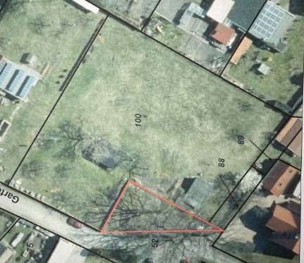 Das Grundstück ist im südlichen Bereich bereits mit einem einfachen Bungalow sowie einem gemauerten Schuppen bebaut. Diese Bestandsgebäude könnten je nach Bedarf erhalten, modernisiert oder entfernt werden, um Platz für eine neue Bebauung zu schaffen. Die Bepflanzung des Grundstücks umfasst mehrere Apfel- und Birnbäume sowie einen groß gewachsenen Walnussbaum.