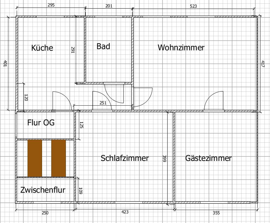 - Ausstattung des Bades Dusche, Badewanne, Fenster